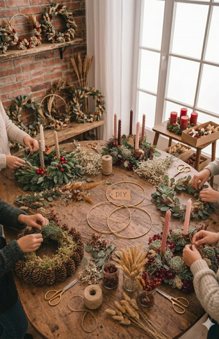 Komm vorbei und gestalte deinen ganz persönlichen Adventskranz oder dein individuelles Gesteck in einer kleinen, gemütlichen Runde. Egal ob natürlich mit viel Eukalyptus, rustikal mit Zapfen oder modern mit Sukkulenten und gedrehten Kerzen – bei uns findest du die Inspiration und alle Materialien, die du für dein Unikat brauchst.